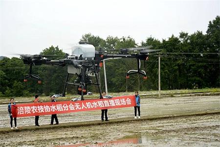 “省时又省力,无人机直播好给力!”4月15日,在重庆市涪陵区龙潭镇新乐村渝妹儿稻香园B区举行的“渝妹儿米业优质粮食工程无人机水稻直播现场”会上,无人机直播水稻赢得了现场观摩者的称赞。