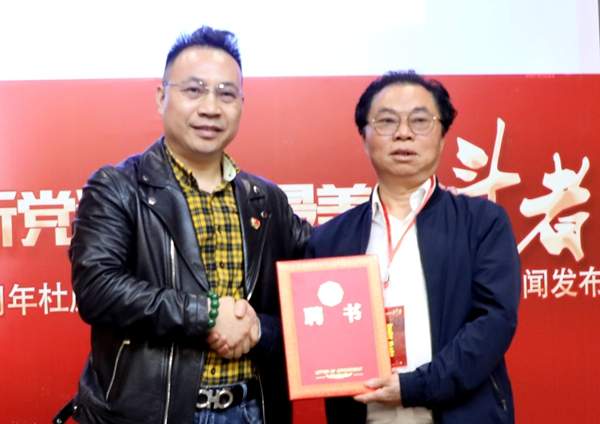 资深新闻媒体人,中国芒果飓风控股集团总裁、杜康古城酒业(湖南)控股有限公司总顾问孙承春为中国农业银行湖南省分行原巡视员、湖南省文史研究馆馆员、湖南省人民政府参事室研究员、湖南省书法家协会理事曾昭才先生颁发“企业爱心大使”证书;中国管理科学研究院研究员、湖南慧融实业发展有限公司董事长李保慧为国家一级演员、中国潇湘伟人影视演员剧团团长、周恩来总理特型扮演者陈业树先生颁发“企业形象大使”证书。